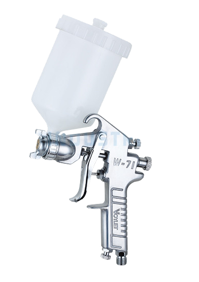 ปืนพ่นสีอีกประเภทหนึ่งคือแบบป้อนแรงโน้มถ่วงชนิดหนึ่ง ใช้งานง่าย น้ำหนักเบา และไม่ต้องใช้แรงดันลมสูง เหมาะสำหรับช่างทาสีรถยนต์สมัครเล่น เมื่อเลือกชุดพ่นสี ควรคำนึงถึงน้ำหนัก ประเภทการจ่าย และความดันอากาศด้วย พิจารณางบประมาณของคุณเมื่อเลือกปืนพ่นสี มันควรจะตรงกับความต้องการของคุณและเข้ากันได้กับรถของคุณ คุณสามารถซื้อชุดอุปกรณ์ได้ตามความต้องการ ดังนั้นควรเลือกชุดที่เหมาะกับงบประมาณของคุณ